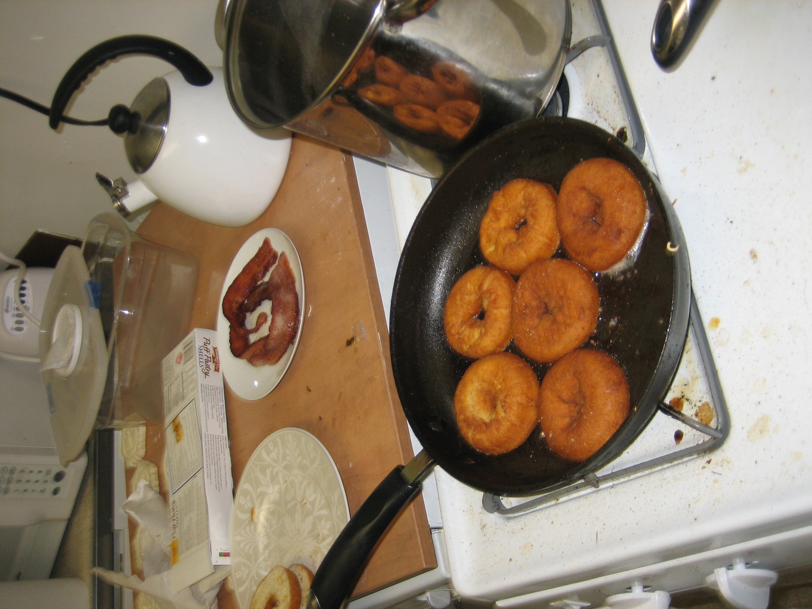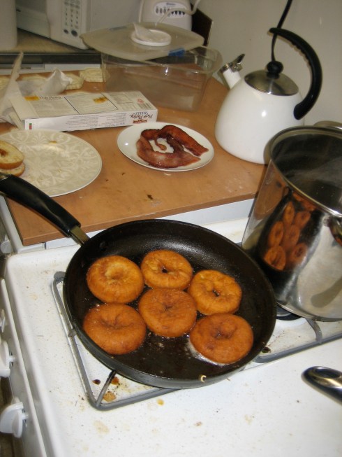 Boss S told me a few days ago that I should supplement my latkes with donuts for Hanukkah (a traditional Jew food) — luckily we had several bacon fried donuts leftover from last night, so I figured I would eat one today in preparation for the first night of the Festival of Lights. (Btw my doc office called me on Tuesday to postpone my Wednesday physical until next week. I was so pissed. I had eaten healthy for nearly 48 hours for what. NOTHING. So last night’s cholesterol overload was my way of saying ‘fuck you doc’…… or ‘hooray Glee!’ Starting next Tuesday I’ll probably start eating healthy again in preparation for my rescheduled Thursday physical.)
